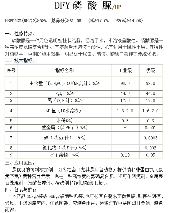 濰坊大富源環(huán)保科技有限公司位于美麗的世界風箏之都—山東濰坊。本公司專業(yè)生產(chǎn)經(jīng)營磷酸二氫鉀、晶體磷酸一銨、晶體磷酸二銨、硝酸鉀、磷酸脲、農(nóng)業(yè)級聚磷酸銨、阻燃級聚磷酸銨、大量元素水溶性肥料等,產(chǎn)品品種多、規(guī)格齊,質(zhì)量長期穩(wěn)定可靠,產(chǎn)品投放市場以來,深受新老客戶的好評!在企業(yè)多年的生產(chǎn)實踐中,積累了豐富的產(chǎn)品經(jīng)驗和市場經(jīng)驗,憑借優(yōu)越的產(chǎn)品質(zhì)量,先進的經(jīng)營理念和良好的企業(yè)形象,贏得了廣大用戶的...